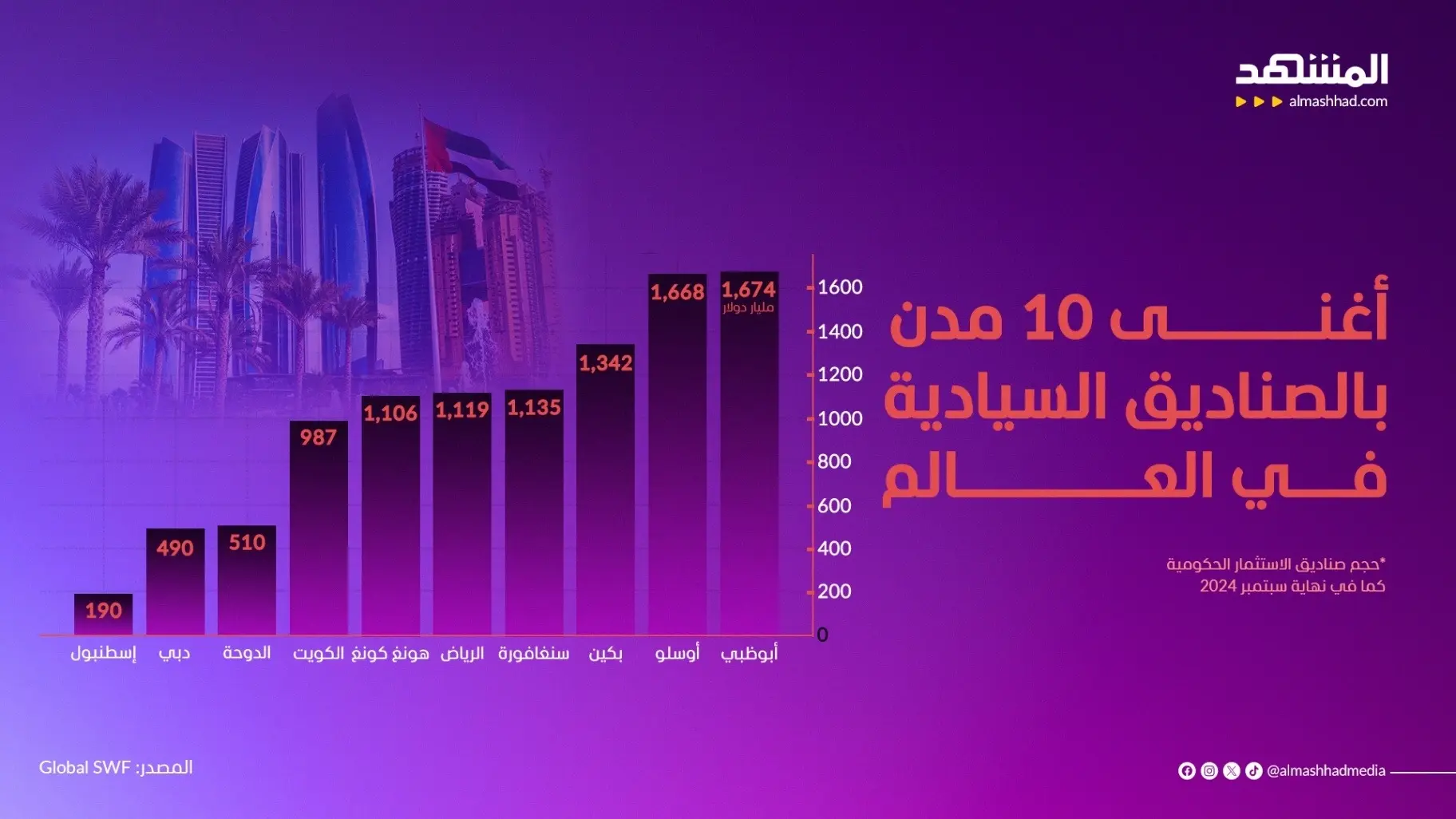 وتمثّل هذه المدن الـ6 مجتمعة ثلثي رأس المال الذي تديره صناديق الثروة السيادية على مستوى العالم، أي 12,500 مليار دولار اعتبارا من 1 أكتوبر 2024.