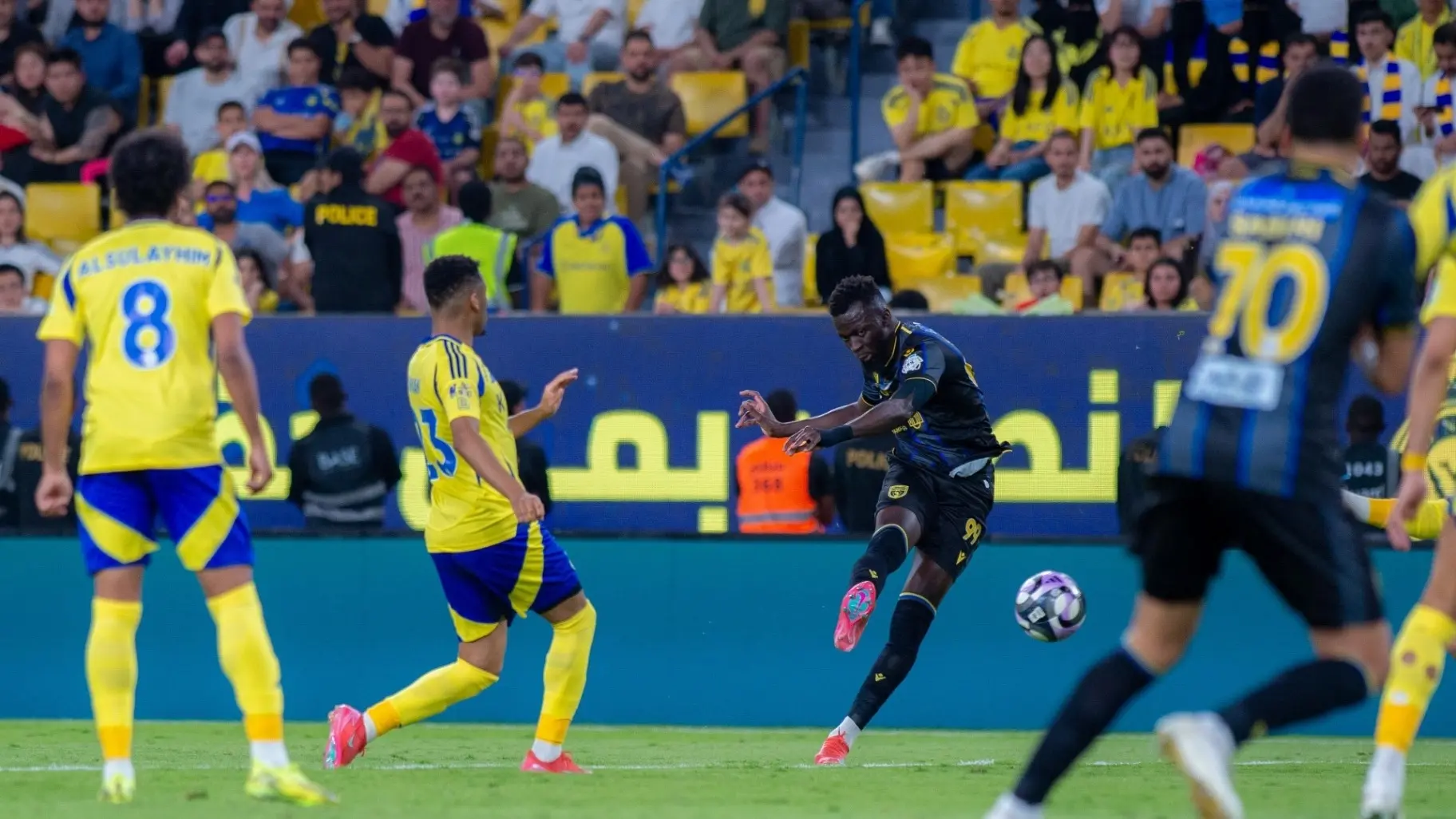 التعاون دخل المباراة بثقة وجرأة، وبدأها بأفضلية واضحة على أصحاب الأرض، خصوصًا مع تحركات موسى بارو التي شكلت صداعًا لدفاع النصر في الدقائق الأولى، لكن تألق الحارس بينتو حافظ على الشباك نظيفة في الشوط الأول.