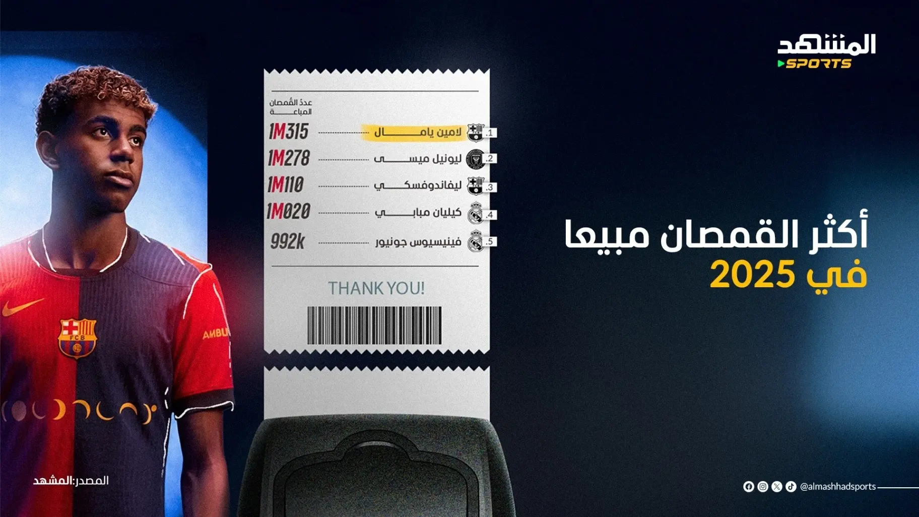 ويأتي هذا الإنجاز ليعكس الشعبية الجارفة التي بات يتمتع بها اللاعب الشاب، ويؤكد في الوقت ذاته الهيمنة المطلقة لقطبي الكرة الإسبانية، برشلونة وريال مدريد، على سوق المنتجات الرياضية عالميًا.