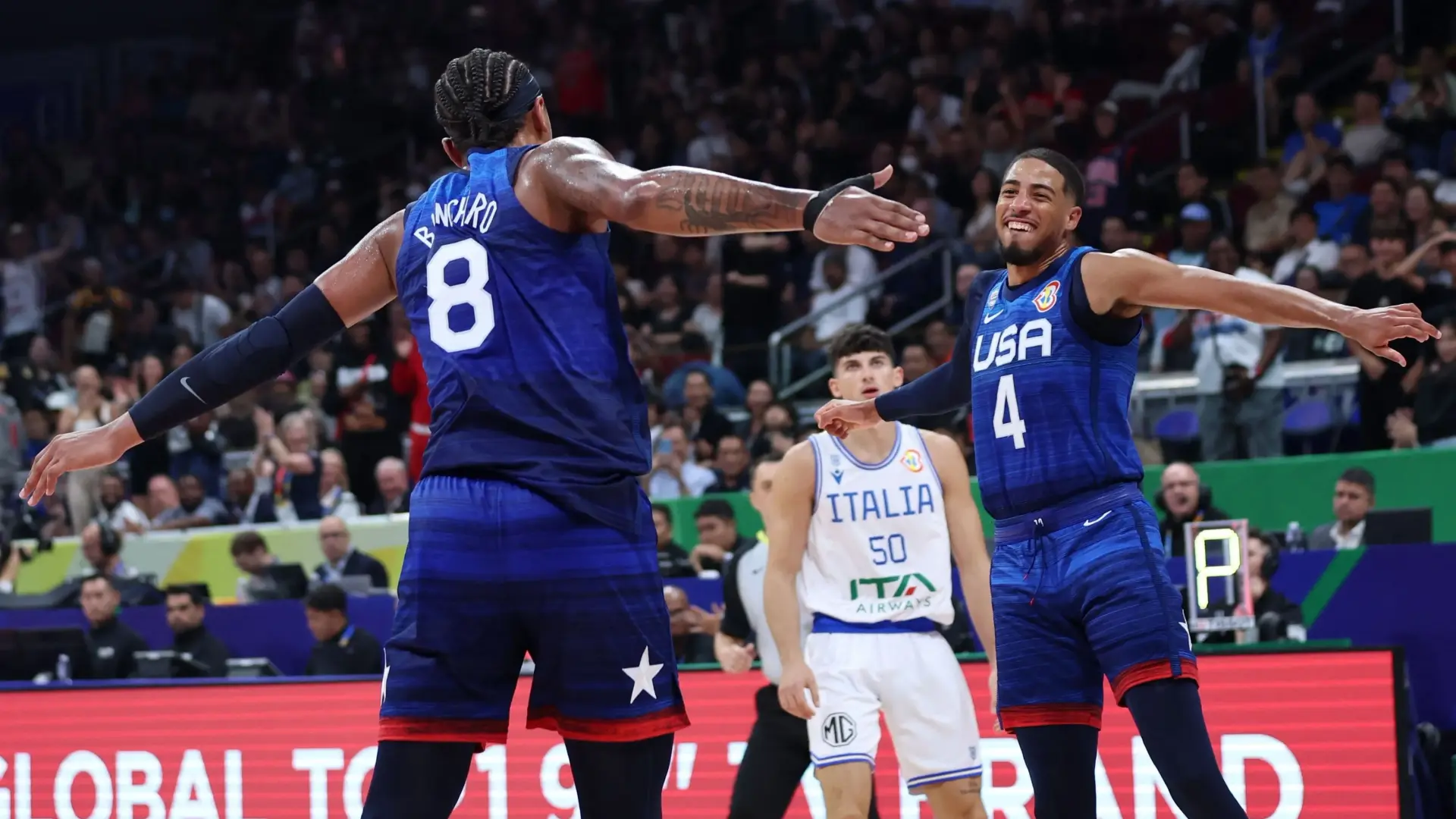 وتأمل أميركا باستعادة لقبها الذي فقدته في عام 2019 لصالح إسبانيا، بعد أن تمكنت من اجتياز اختبار جديد، وذلك بعد الفوز على حساب المنافس الإيطالي، الثلاثاء، بنتيجة كبيرة وصلت إلى 100-63.