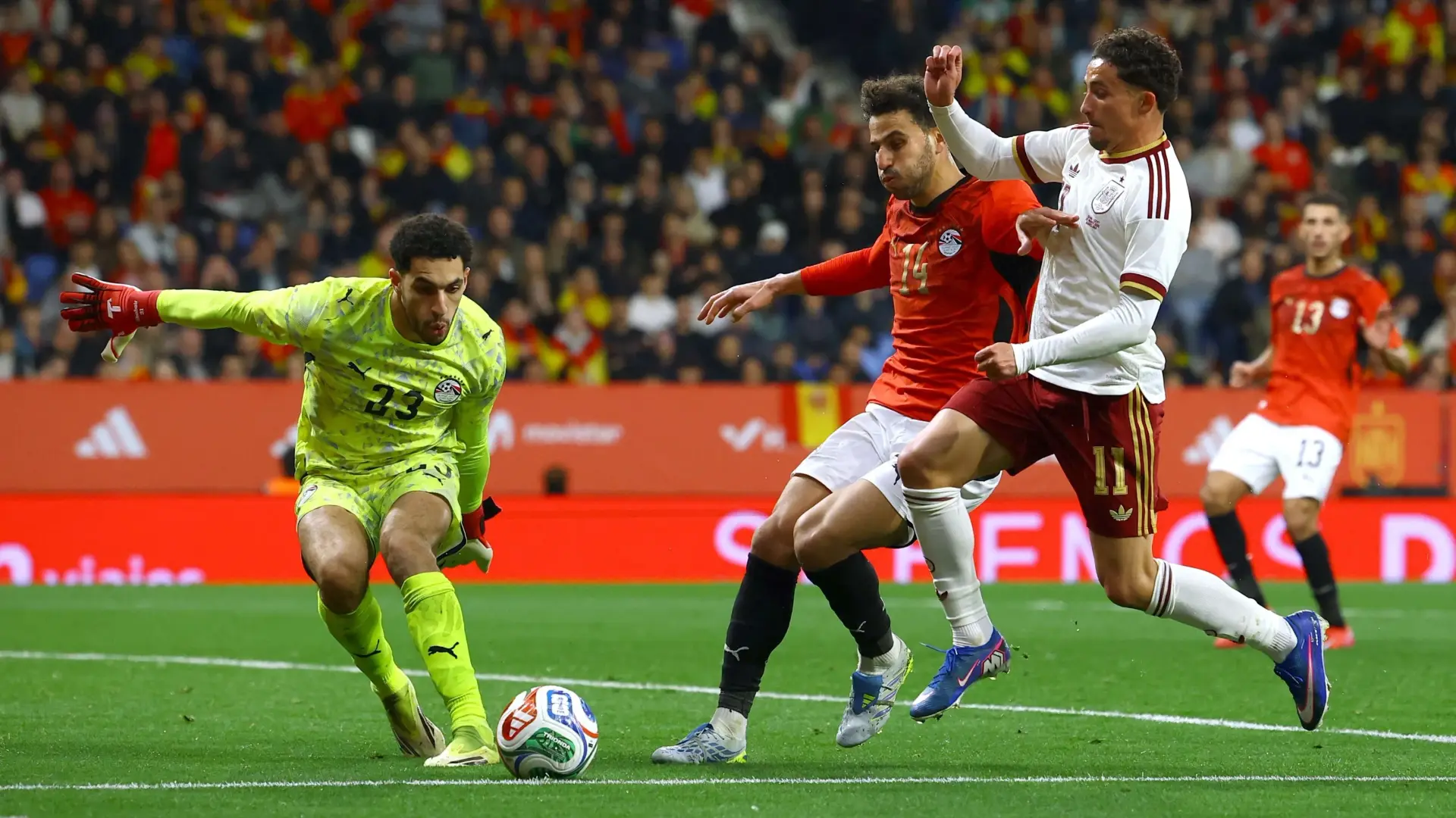 وتصدى شوبير لـ6 تسديدات خطيرة على مرماه من لاعبي ونجوم منتخب إسبانيا، أبرزها انفراد تام بالمرمى مع نجم برشلونة، بيدري، كما أنه لعب دورا كبيرا في الخروج بالكرة بسبب إجادته للعب بقدميّه.
