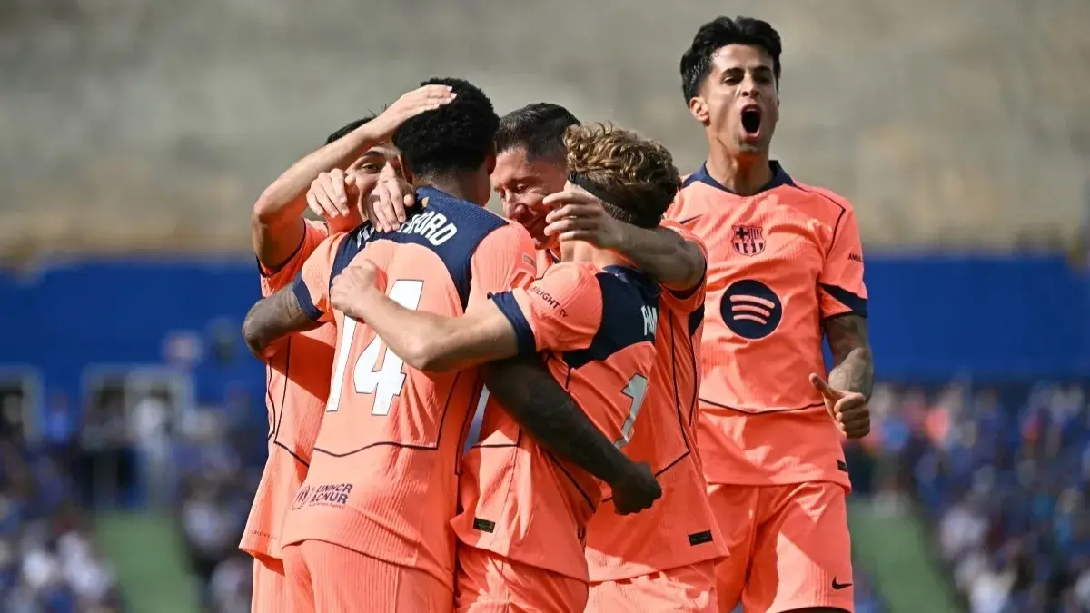 عزز برشلونة فرصة للاحتفاظ بلقب الدوري الإسباني لهذا الموسم 2025-2026 بعد أن فاز على خيتافي بنتيجة 2-0 خارج أرضه اليوم السبت لحساب الجولة 32 من الليغا.
