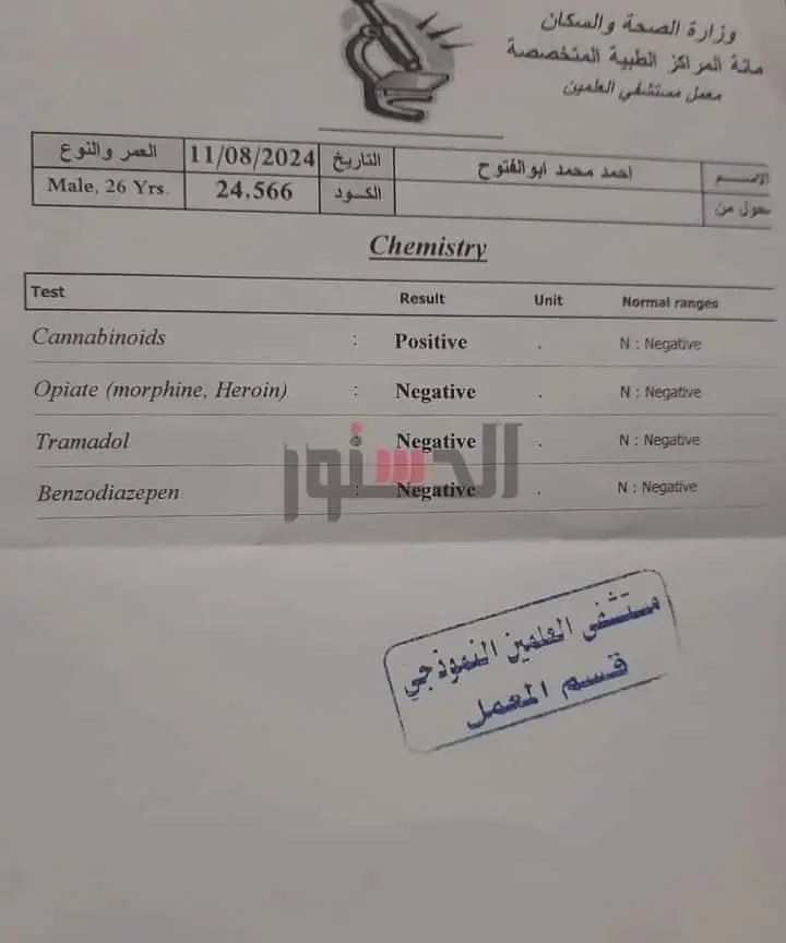 وكان برفقة فتوح زميله في الفريق محمد صبحي، الذي تم إخلاء سبيله، نظرا لأن السيارة كانت مملوكة لفتوح، في وقت تم التحفظ على أحمد فتوح في قسم شرطة العلمين لحين عرضه على النيابة، كما أظهرت صورة مسربة من التحليلات التي خضع لها اللاعب أنّه تعاطى نسبة من مخدر "الحشيش" بينما لم تظهر التحاليل وجود أي تأثير للمخدرات الصلبة، أو الكحول.