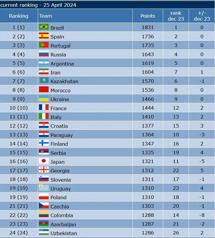 ترتيب منتخبات الفوتسال عالميا 2024