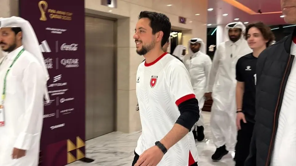 تشهد مباراة الأردن والسعودية المقامة حاليا في ستاد "البيت" بمدينة الخور في قطر، حضورا بارزا لولي العهد المملكة الأردنية.