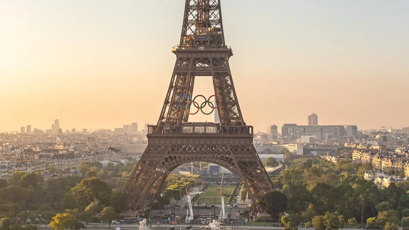 عرض منظمو أولمبياد باريس الصيفي 2024 اليوم الجمعة الحلقات الأولمبية على برج إيفل قبل 50 يوما من موعد انطلاق الدورة الصيفية في العاصمة الفرنسية.