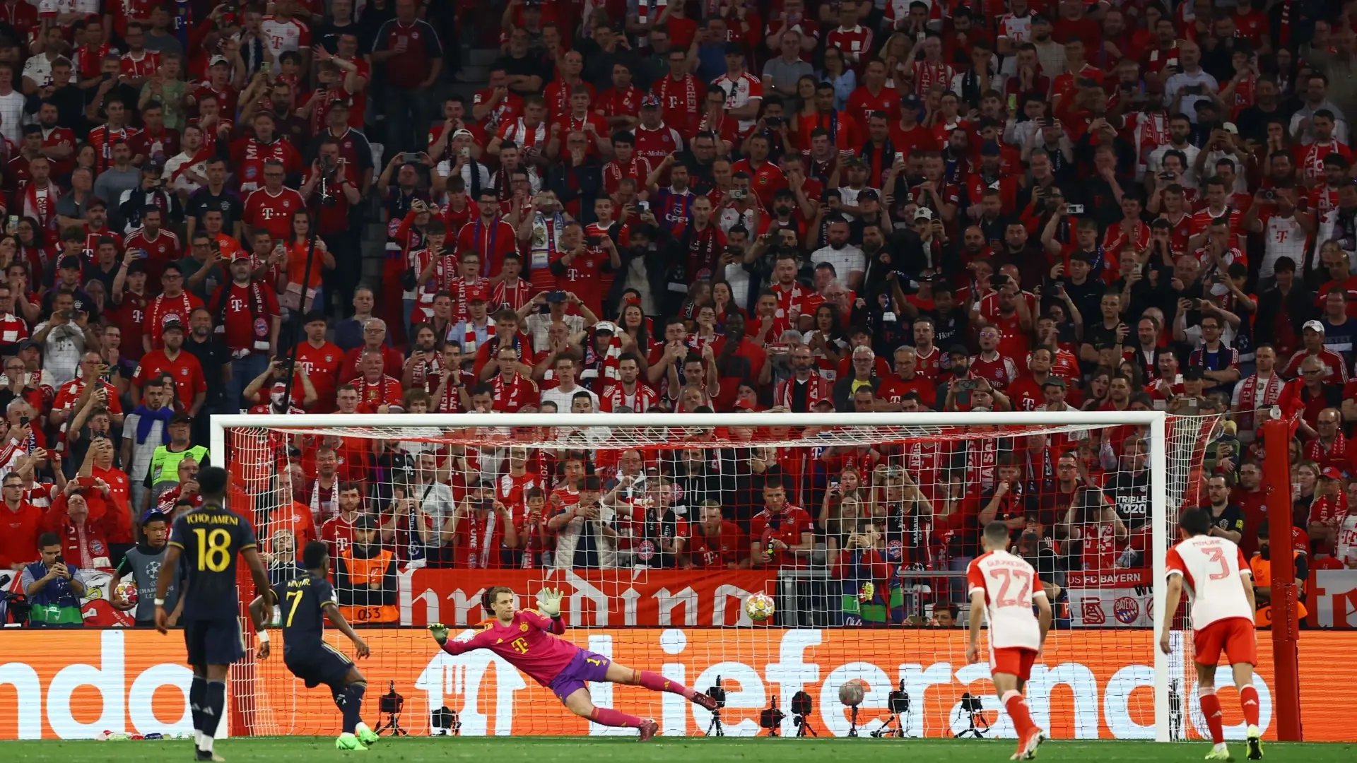 وتقدم بعدها هاري كين لبايرن ميونخ في الدقيقة 57 من ضربة جزاء تحصل عليها جمال موسيالا، قبل أن يتعادل فينيسيوس جونيور من علامة الجزاء أيضًا في الدقيقة 83.
