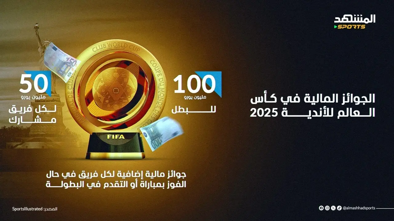 قيمة جوائز كأس العالم للأندية 2025 ستكون قياسية بكل تأكيد، خصوصا للقادمين من القارة الإفريقية والآسيوية، والذين يرغبون في ظهور لافت بالنسخة الأولى وإحراج الأندية الأوروبية.