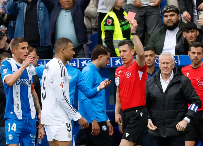 أشعل النجم الفرنسي كيليان مبابي الجدل خلال مواجهة ريال مدريد أمام ديبورتيفو ألافيس في الدوري الإسباني، بعدما تلقى بطاقة حمراء مباشرة في الدقيقة 38، إثر تدخل عنيف على أنطونيو بلانكو لاعب ألافيس.