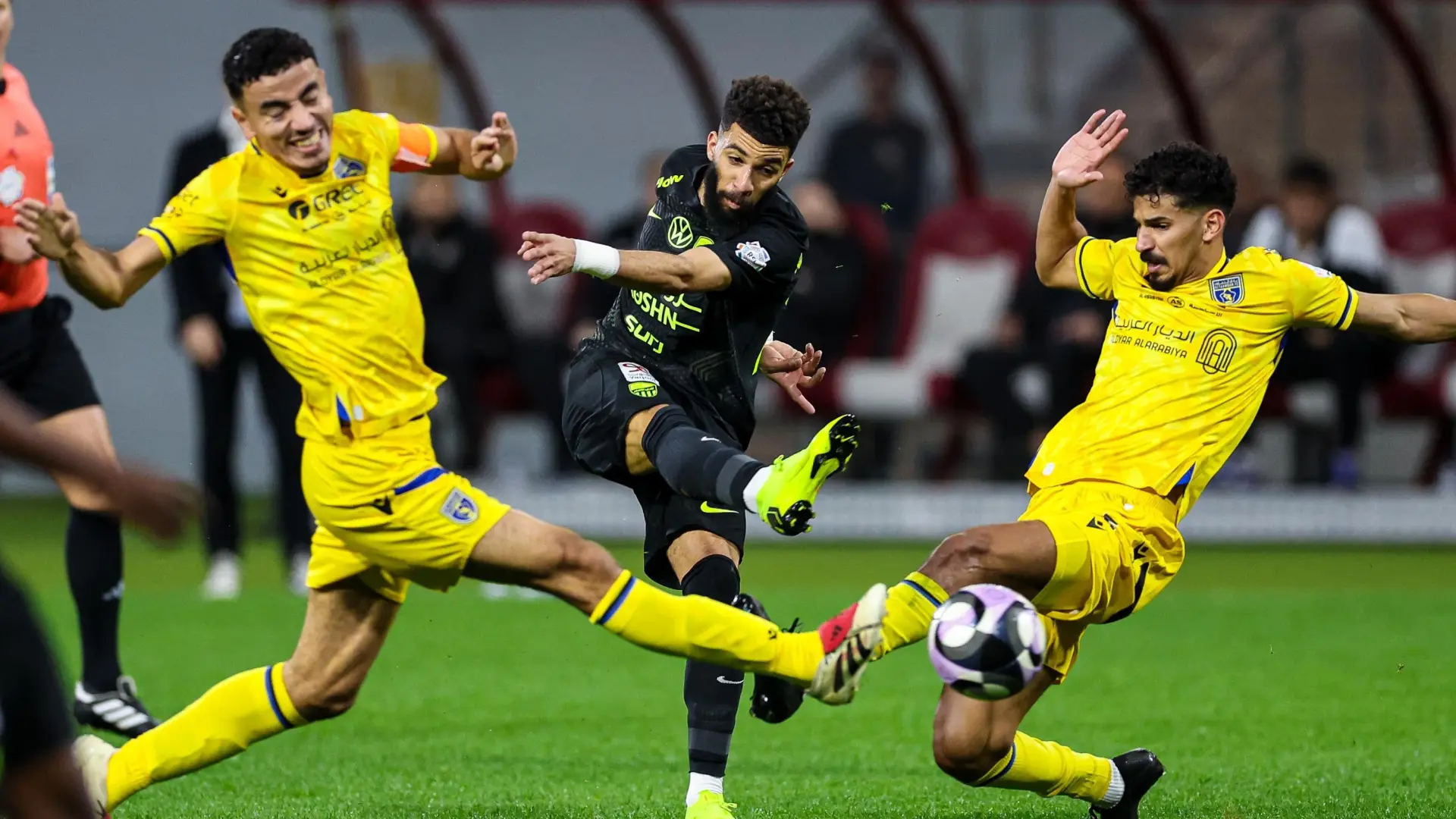 خط الهجوم: عبدالرحمن العبود - كريم بنزيما - ستيفن بيرجوين.