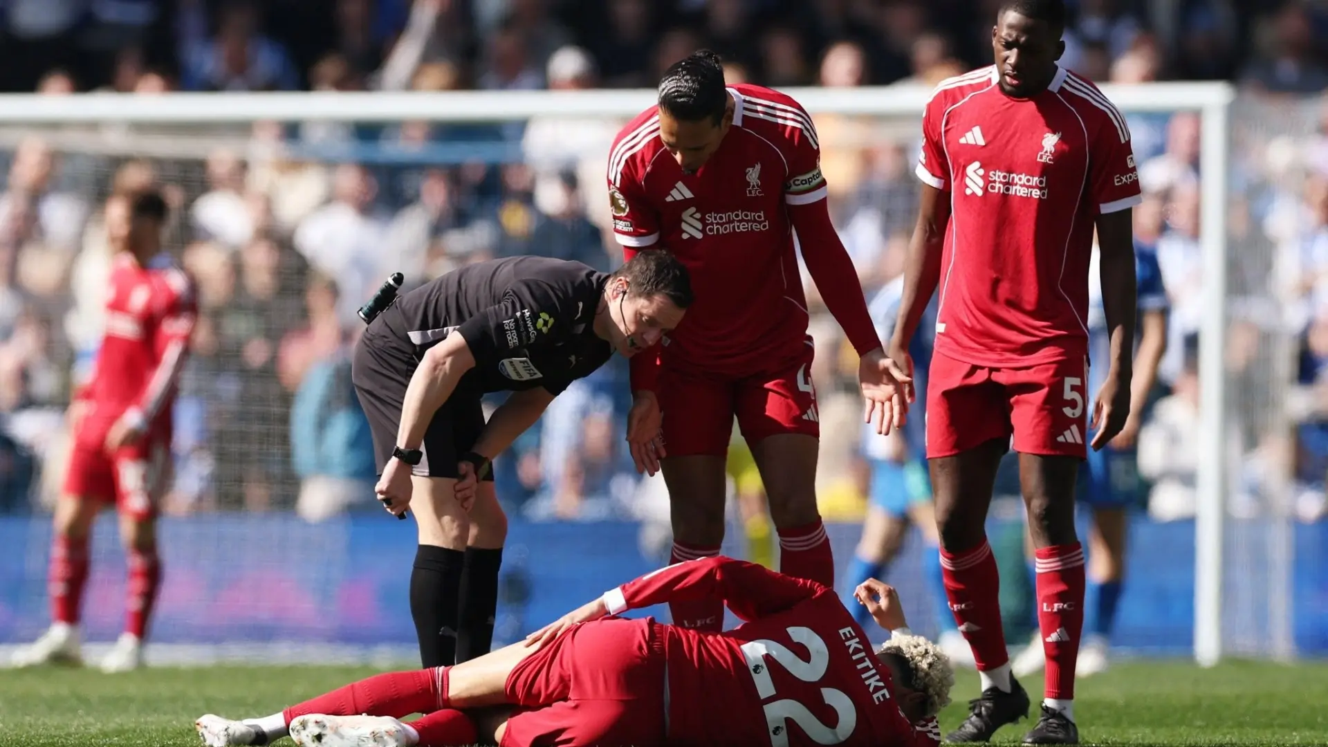 ولعب هوغو إيكيتيكي أساسيا في هذه المواجهة أمام برايتون، لكنه تعرض لإصابة بعد أن حاول استلام تمريرة خلفية أمام اللاعب ميلنر، ليسقط أرضا وهو يتألم بشدة.