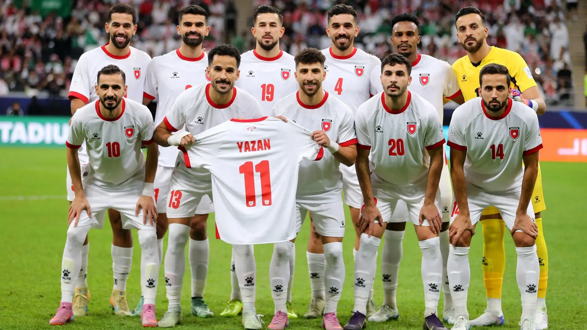 وكان لاعبو المنتخب الأردني قد رفعوا قميصا يحمل اسم ورقم يزن النعيمات خلال الصورة الجماعية التي التقطها الفريق قبل صافرة البداية.