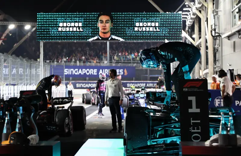 وأحرز فريق مرسيدس بقيادة مديره النمسوي توتو وولف ثمانية ألقاب متتالية لبطولة الصانعين وسبعة ألقاب للسائقين بين 2014 و2021، لكن منذ انضمام راسل في 2022، عانى الفريق للحاق بركب ريد بول وماكلارين.