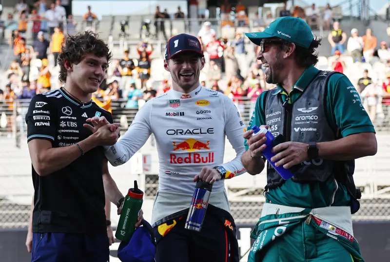 وقال: "أنا متحمس، الأمر لا يصدق، إنها لحظة عظيمة لنا جميعاً. من الواضح أن واحداً منا، هذا الرجل هنا (فيرستابن)، قد فعلها عدة مرات من قبل، لكن هذا ما كنا ننتظره طوال حياتنا".