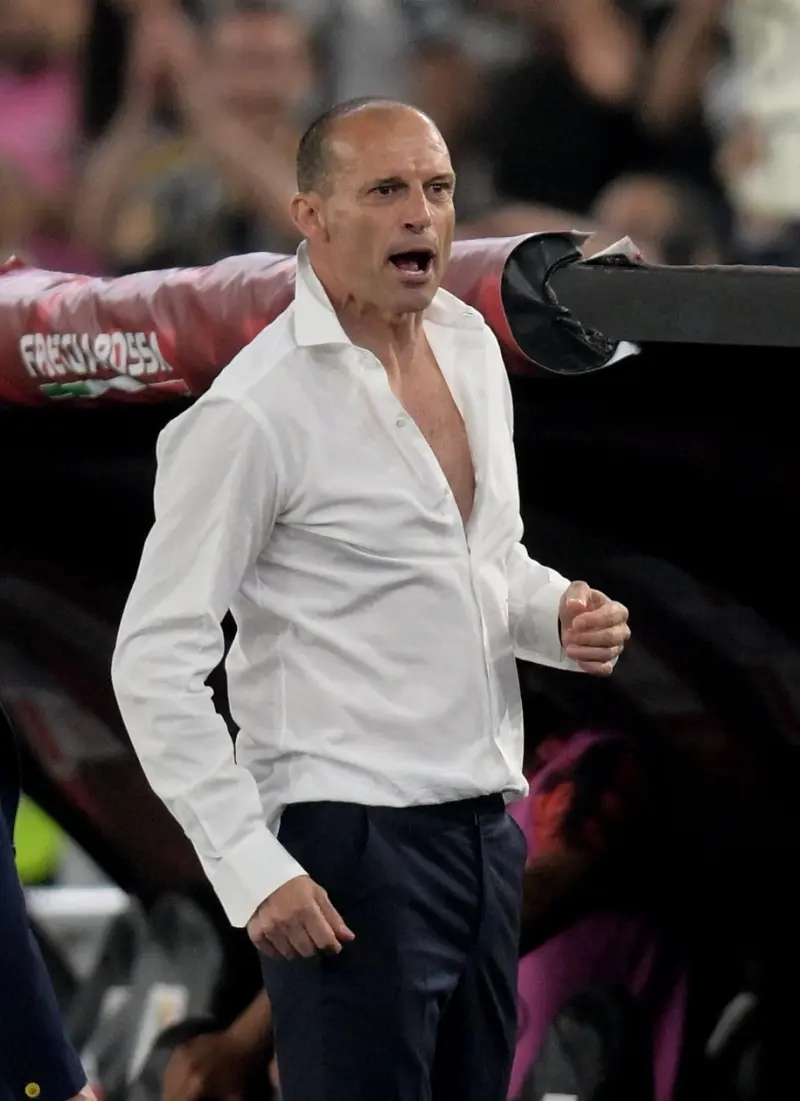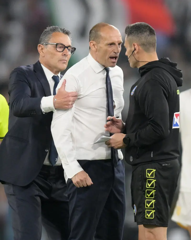 خلال الوقت المُحتسب بدلا من الضائع من عُمر المباراة، ظهر أليغري غاضبا بشدة من إحدى قرارات الحكم فابيو ماريسكا، لدرجة الجنون.
