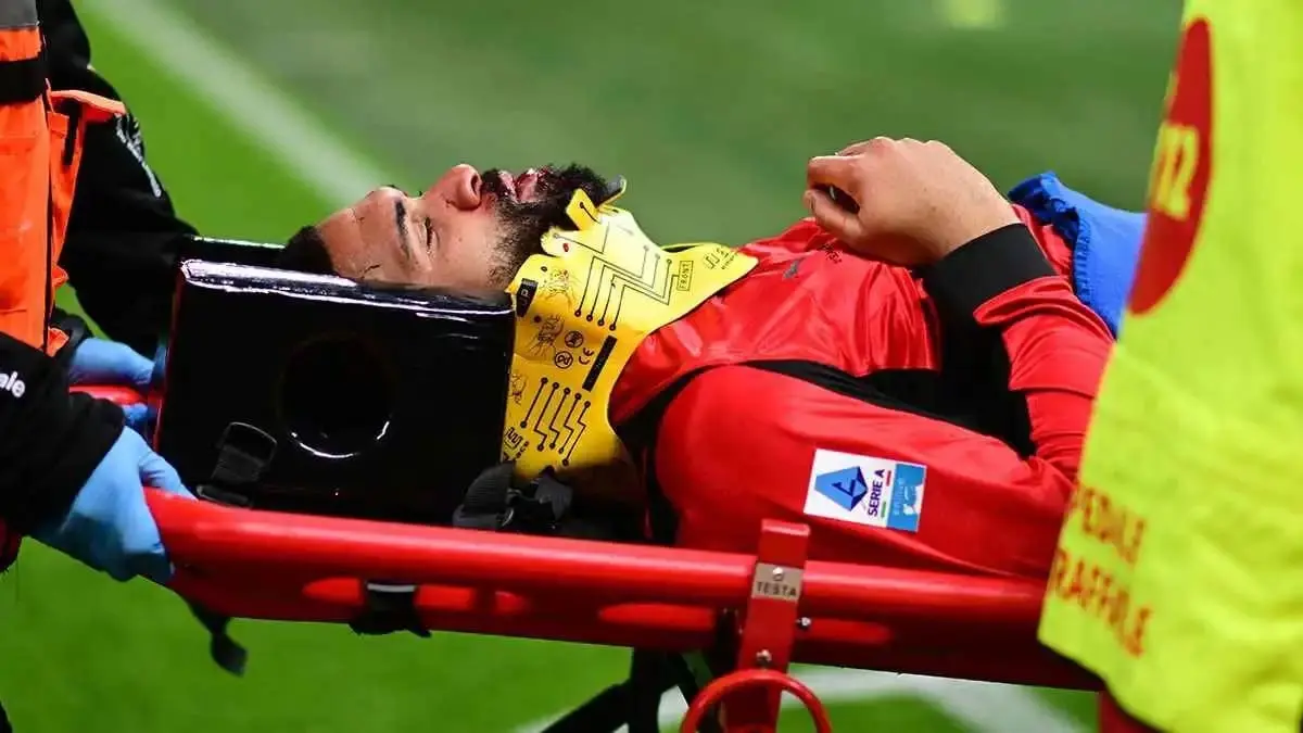 وأظهرت اللقطات اللاعب مغطى بالدماء، ووُضع على حمالة مع دعامة للرقبة، فيما أفادت تقارير "سكاي سبورتس إيطاليا"، أنّ اللاعب البالغ من العمر 30 عامًا، أصيب أيضًا بكسر في الأسنان العلوية وجرحين، بالإضافة إلى كسر في عظام اللثة، ما يتطلب تدخلًا جراحيًا عاجلًا اليوم الاثنين، ويُتوقع غيابه عن الملاعب لشهور عدة بسبب خطورة الإصابة.