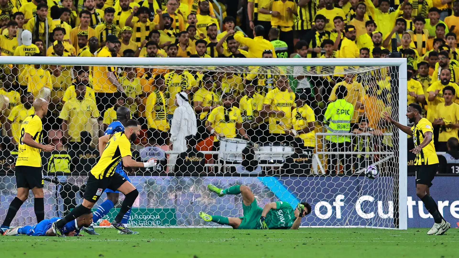 في الدقيقة 72، ظن الاتحاد أنه عزز تفوقه بهدف رابع حمل توقيع كريم بنزيما، لكن تقنية الـ"فار" ألغت الهدف بسبب التسلل، ليُحرم النجم الفرنسي من وضع بصمته في النتيجة مبكرًا.