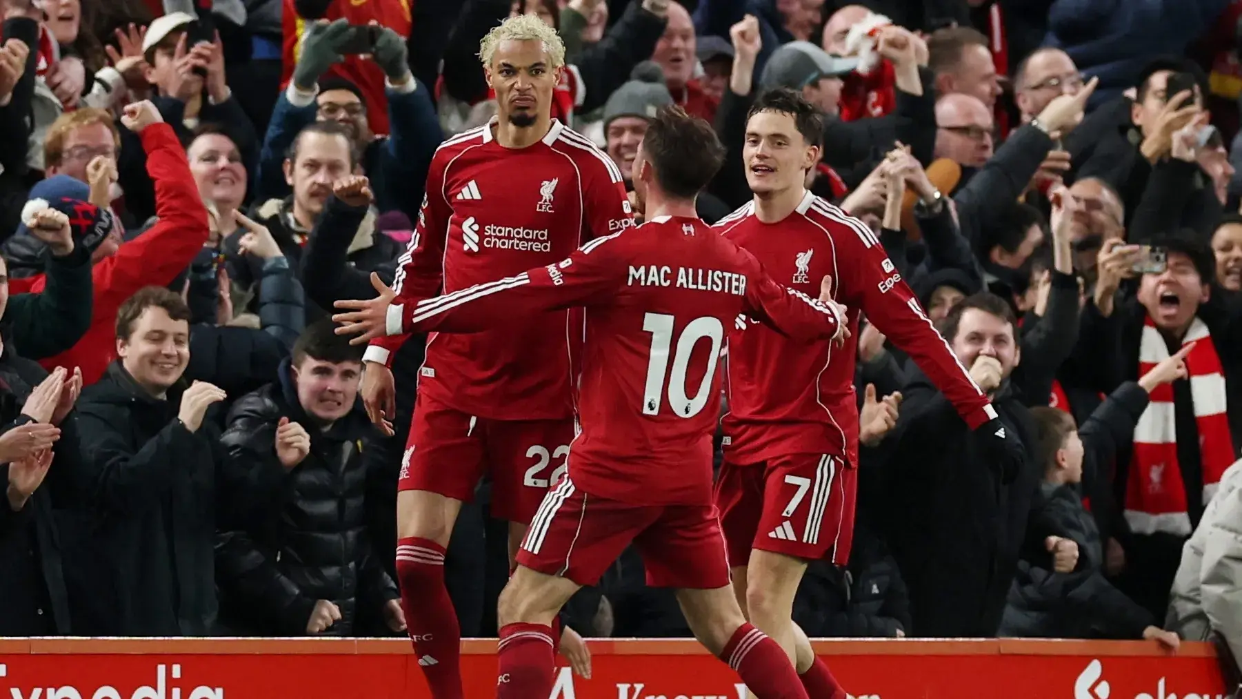 يفتقد ليفربول خدمات المدافع الشاب جيوفاني ليوني حتى نهاية الموسم، بعد تعرّضه لإصابة بقطع في الرباط الصليبي الأمامي، كما انتهى موسم كونور برادلي مبكّرًا إثر إصابة قوية في الركبة خلال مواجهة أرسنال الشهر الماضي، خضع بعدها لتدخل جراحي.