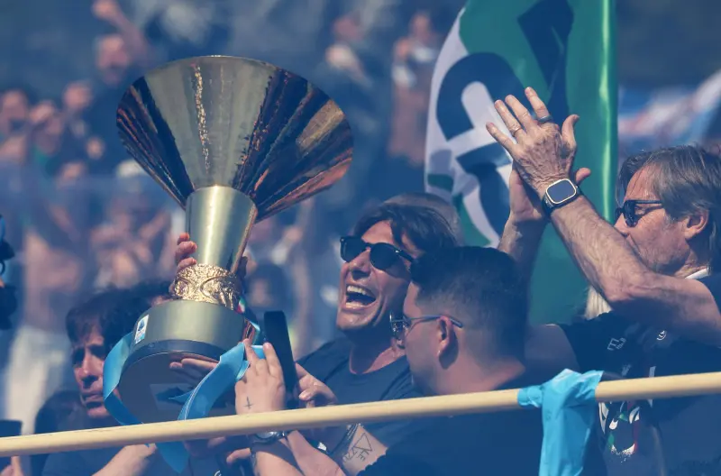 وخلال العرض الجماهيري المهيب الذي تخلله استعراض كأس البطولة، تحدث كونتي إلى شبكة "راي" الإيطالية قائلاً: "هذا الحماس، هذا الشغف غير عاديين ويصعب العثور عليهما في أي مكان آخر"، لكنه لم يحسم موقفه من الاستمرار مع الفريق رغم ارتباطه بعقد يمتد حتى عام 2027.