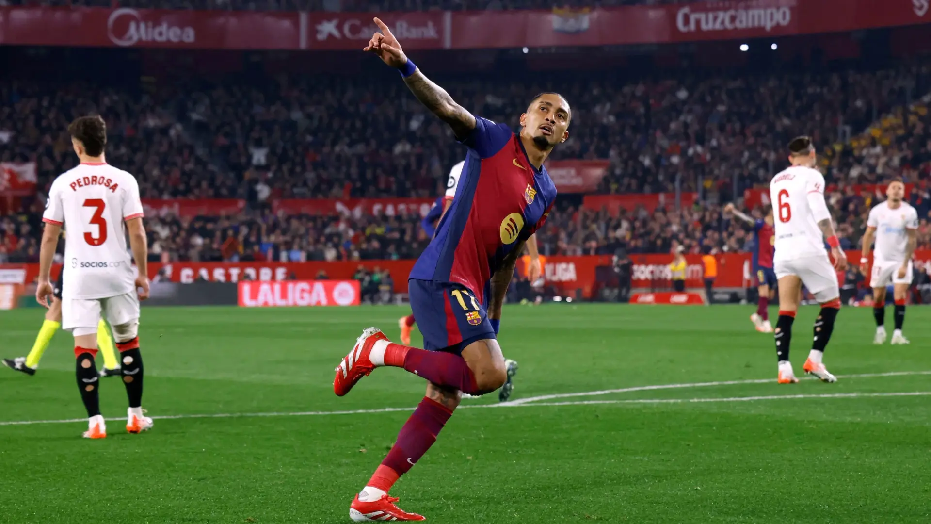 ولم تمضِ سوى 9 دقائق حتى عزّز رافينيا تفوق الفريق الكتالوني بهدف ثالث في الدقيقة 55، بعدما أطلق تسديدة صاروخية من خارج منطقة الجزاء، ليواصل تألقه اللافت هذا الموسم، حيث ساهم في 37 مساهمة تهديفية في 35 مباراة، ليصبح ثاني أكثر اللاعبين تأثيرًا في الدوريات الخمس الكبرى بعد المصري محمد صلاح، نجم ليفربول الإنجليزي.