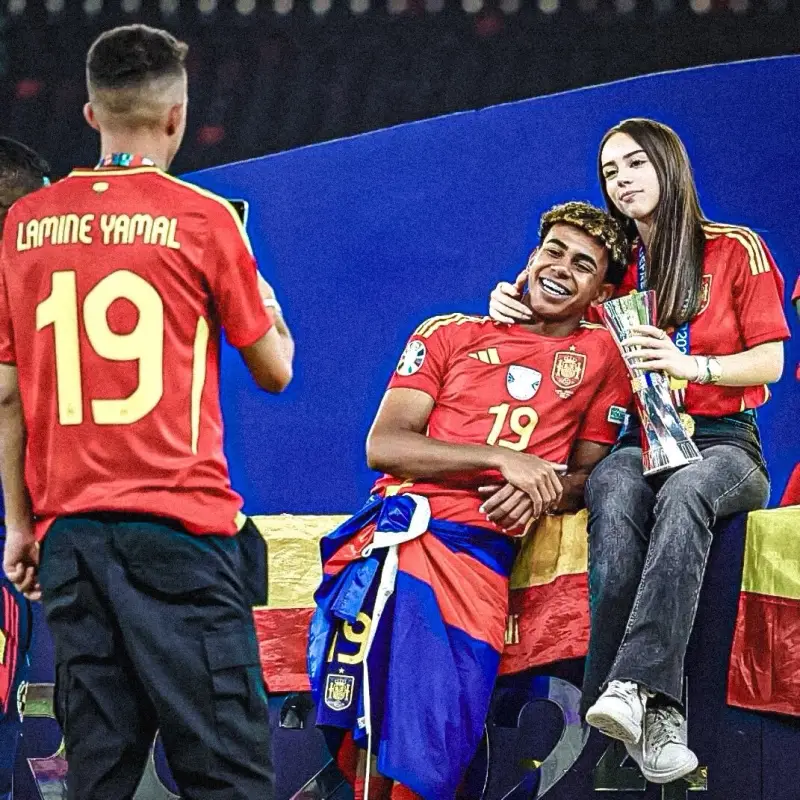 وبينما كان اللاعبون يغادرون الملعب، تمكن يامال من إيجاد لحظة أكثر هدوءًا مع شريكته باديلا، التي ارتدت قميصًا يحمل اسم يامال وتم الترحيب بها على مسرح الفائزين لقضاء بعض الوقت مع صديقها.