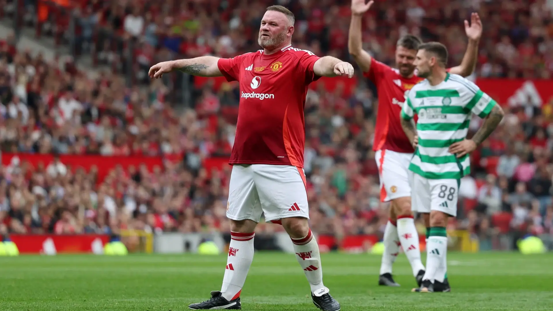 يشغل روني حاليًا منصب المدير الفني لفريق بليموث آرجيل بدوري الدرجة الأولى الإنجليزي، ولكنه استعاد ذكريات اللعب خلال مباراة ودية خيرية، مساء السبت، جمعت نجوم وأساطير مانشستر يونايتد ضد نظرائهم في سيلتك الاسكتلندي.