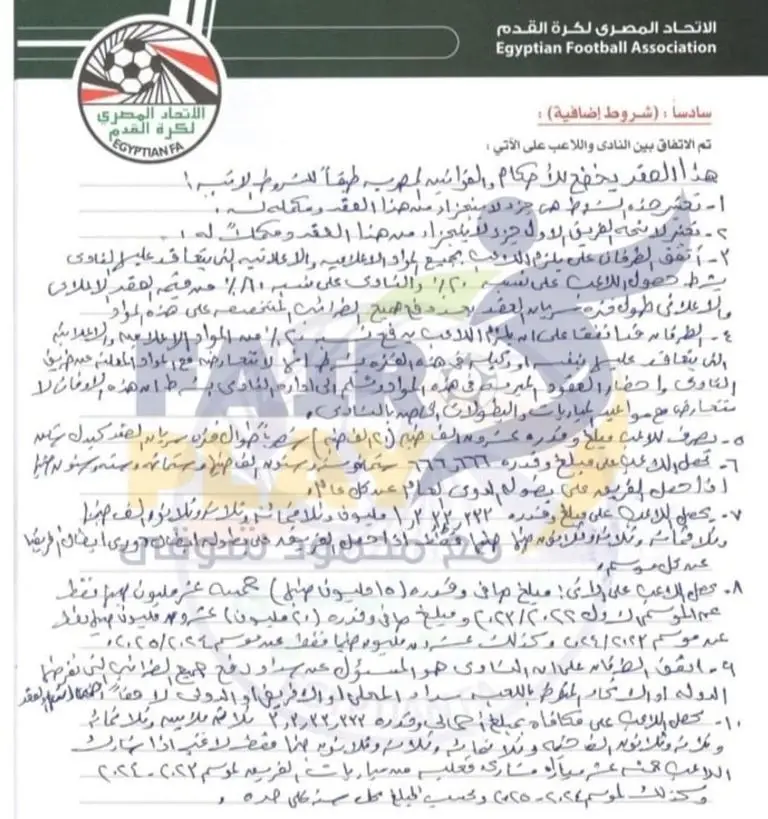 وتضمّن العقد المسرّب أيضا حصول اللاعب المصري على امتيازات أخرى على أموال إضافية عن كل موسم، منها 15 مليون جنيه مصري في الموسم الأول، و20 في الموسمين الثاني والثالث.