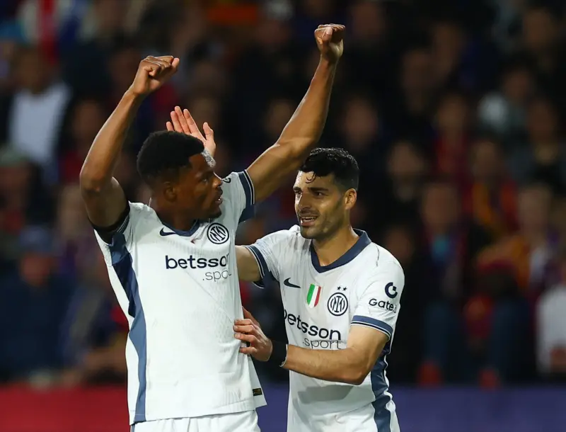 ووسط صدمة الجماهير في مدرجات "لويس كومبانيس"، عاد إنتر لتعميق الجراح في الدقيقة 21 بهدف ثانٍ عبر الهولندي دينزل دومفريس، الذي ارتقى لركنية من هاكان تشالهان أوغلو وسدد كرة أكروباتية هزت الشباك.