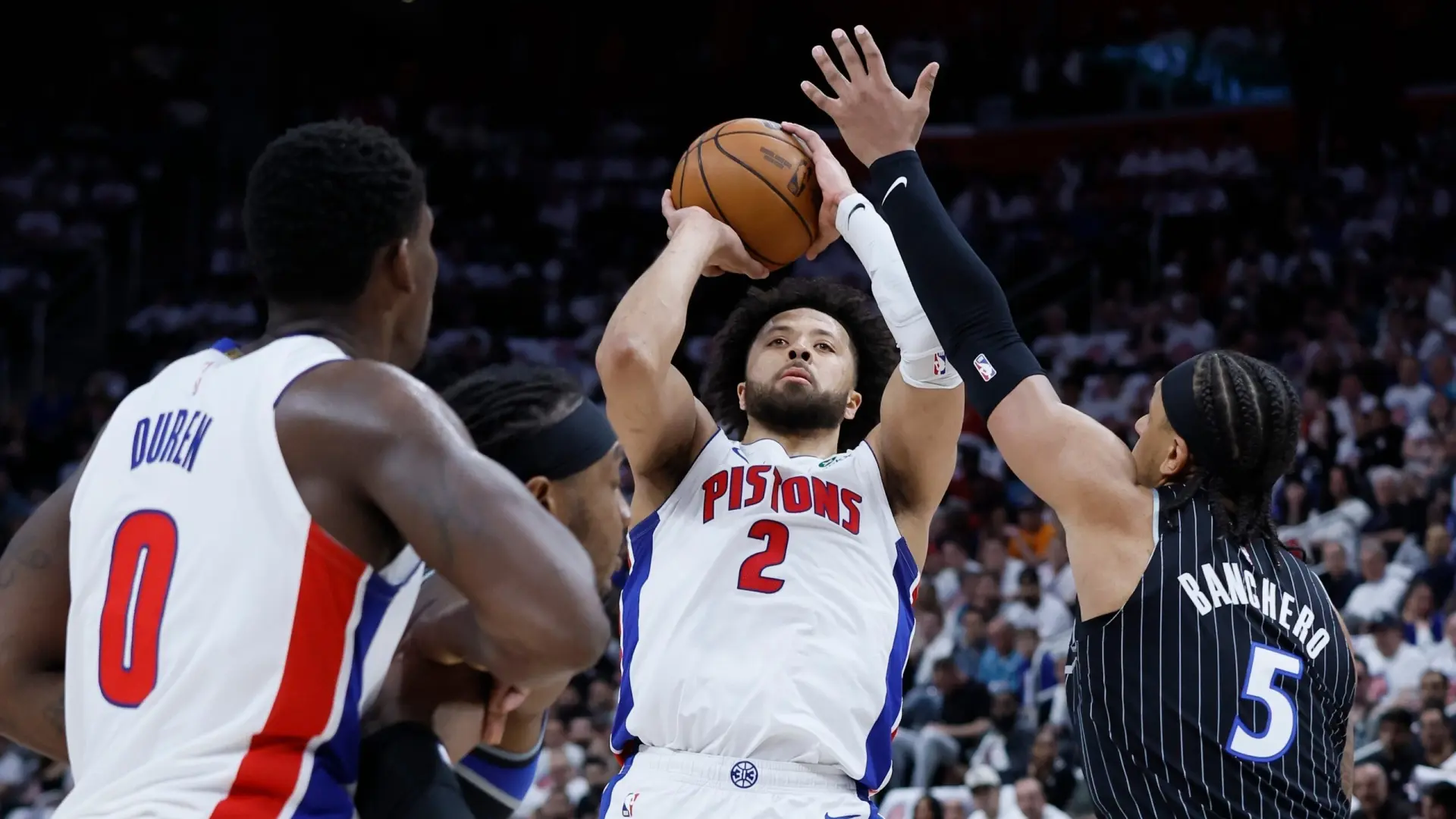 وفي ديترويت، استند بيستونز، متصدر المنطقة الشرقية، إلى دفاعه الصلب واندفاعه الهجومي القوي في الربع الـ3 لتخطي عقبة أورلاندو ماجيك 98-83، والرد على هزيمته المفاجئة في المباراة الـ1 بنتيجة 101-112. وبرز كايد كانينغهام بتسجيله 27 نقطة وتقديم 11 تمريرة حاسمة، وأضاف توبياس هاريس 16 نقطة و11 متابعة.
