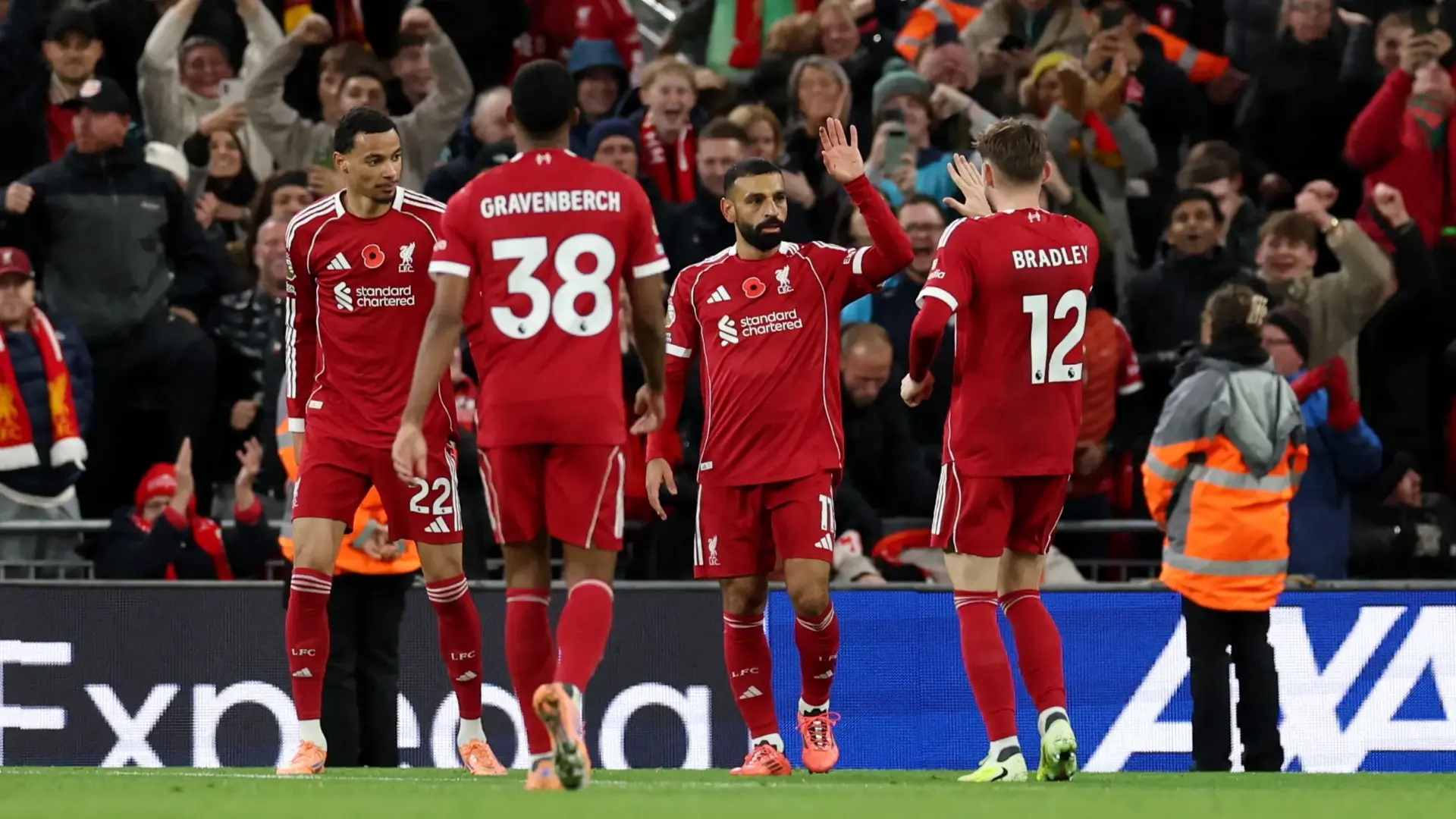 أصبح محمد صلاح 3 لاعب في تاريخ ليفربول يحرز 250 هدفًا عندما سجل في الوقت المحتسب بدلًا من الضائع للشوط الأول، وأضاف رايان غرافنبرخ هدفًا في الشوط الثاني بعد غيابه عن 3 مباريات بسبب إصابة في الكاحل، ليمنحا الفريق الفوز الثاني في ثماني مباريات بجميع المسابقات.