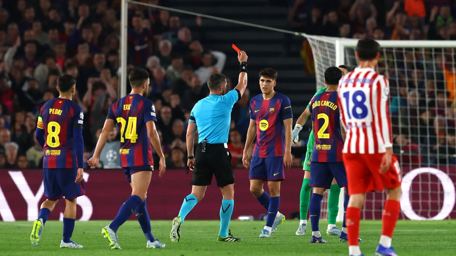 أثار الجدل التحكيمي قمة برشلونة وأتلتيكو مدريد في دوري أبطال أوروبا، بعد اللقطة المثيرة التي بطلها المدافع الشاب باو كوبارسي، والتي دفعت الحكم إلى مراجعة تقنية الفيديو "الفار" قبل اتخاذ قرار حاسم بشأن طرده.
