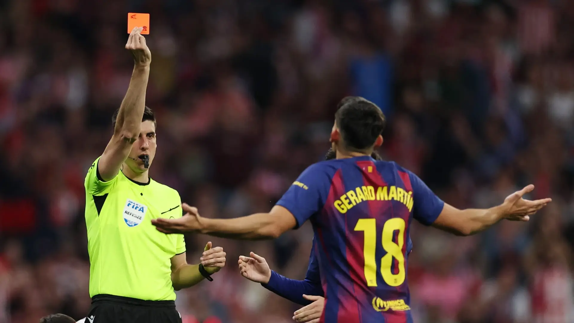 أثار تقرير لجنة الحكام في الدوري الإسباني جدلًا واسعًا، بعدما أكد أن لاعب برشلونة، جيرارد مارتن، كان يستحق الطرد خلال مواجهة فريقه أمام أتلتيكو مدريد؛ السبت الماضي، في لقطة تحكيمية مثيرة شهدت تدخل تقنية الفيديو "الفار" وأشعلت حربًا.