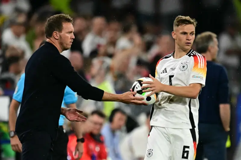 استقر يوليان ناغلسمان المدير الفني لمنتخب ألمانيا "المانشافت" على 9 أسماء من اللاعبين الذي سيدفع بهم في التشكيل الأساسي للمباراة أمام البرتغال في نصف نهائي دوري الأمم الأوروبية، المقرر لها أن تُلعب غدا الأربعاء، لكنه لم يُبلغ جميع لاعبيه بقراره بعد.