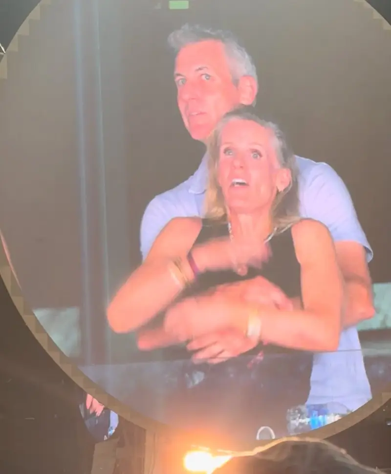 وأظهر المقطع بايرون وهو يحتضن زميلته خلال حفل الفرقة الشهيرة، وبعد ظهورهما على شاشة كبيرة في الحفل ارتبك الثنائي حيث حاولت السيدة إخفاء وجهها بعدما أدركت أنها ظهرت أمام الآلاف من الحاضرين فيما حاول بايرون الاختباء وإعطاء ظهره للكاميرا.