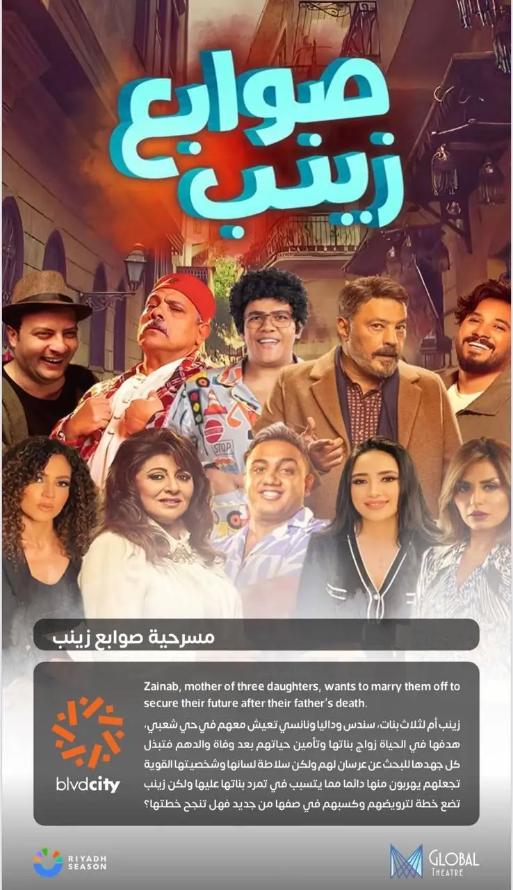 مسرحية مصرية تعرض على المسرح العالمي في منطقة بوليفارد سيتي، وتدور أحداثها حول مجموعة من الأشقاء الذي يعمل كل منهما في بلد مختلف، وتفشل كل محاولات الوالدين في جمع شملهم مرة أخرى، لكن تتمكن شقيقتهم في تدبير حيلة تجمعهم من جديد. تنطلق المسرحية في 24 نوفمبر، وتبدأ أسعار التذاكر من 85 ريال سعودي.