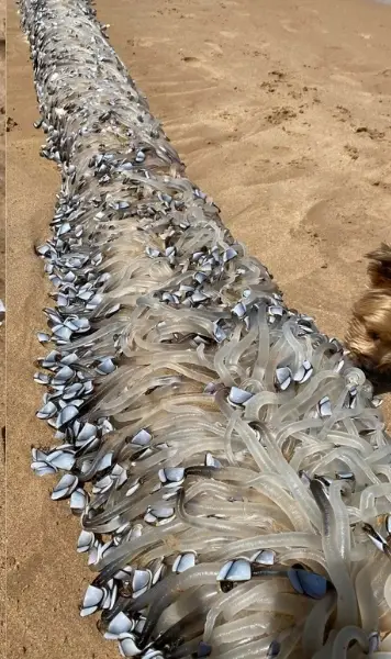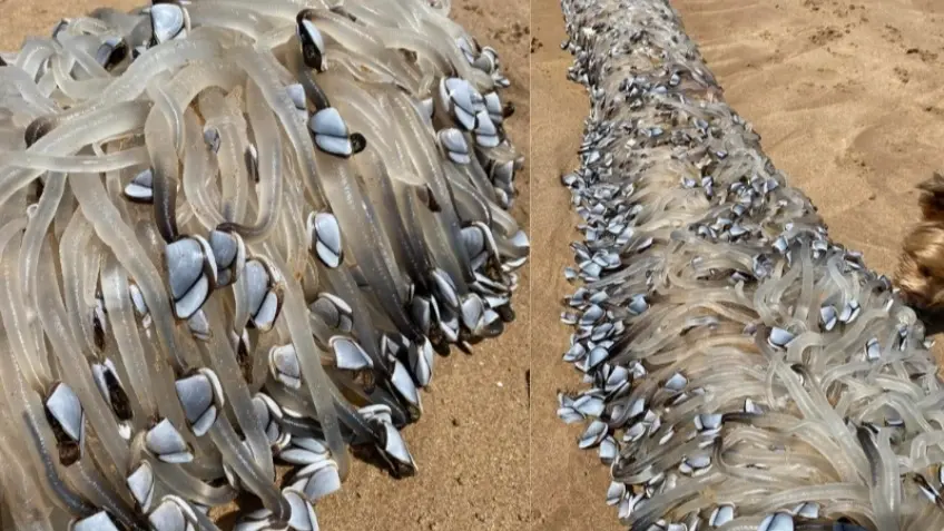 ويبلغ طول المخلوق الغريب نحو 3 أمتار، وجسمه مكون من مجموعة سيقان شفافة، ويوجد في نهاية كل خصلة من تلك السيقان أصداف.