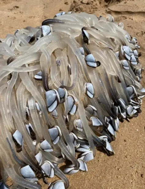 وأوضحت الدكتورة زوي دوبلداي، أن قشريات الأوز يوجد منها نوعان، النوع الأول وهو النوع الشهير الذي ينمو على الصخور وهياكل السفن، ويطلق عليه اسم "البلوط"، والنوع الثاني الذي ينمو على البنية التحتية البحرية، ويكون شبيهًا بالمخلوق الذي جرفه الموج مؤخرًا إلى خليج هورسشو.