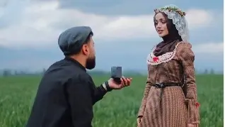 وظهر في المشهد التالي وهي تركب على حصانه الأبيض وهو يقود بها، وأرفقت عبير الصغير مقطع الفيديو بتعليق "منذ ألف عام"، مع إشارة إلى خطيبها يوسف فرحات.
