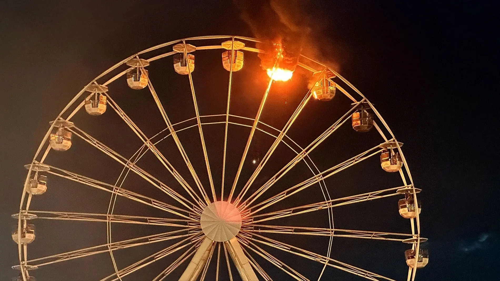 وأظهرت صور نشرتها وسائل إعلام محلية النيران تندلع في مقصورتين من دولاب الهواء، ودخان أسود كثيف يتصاعد.