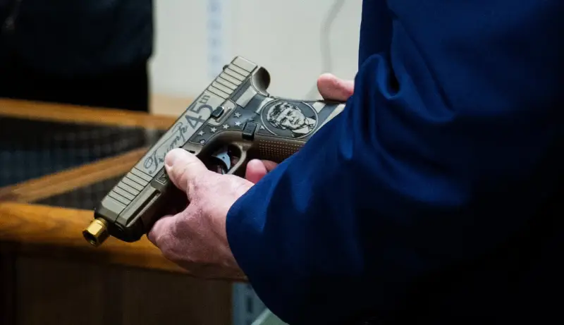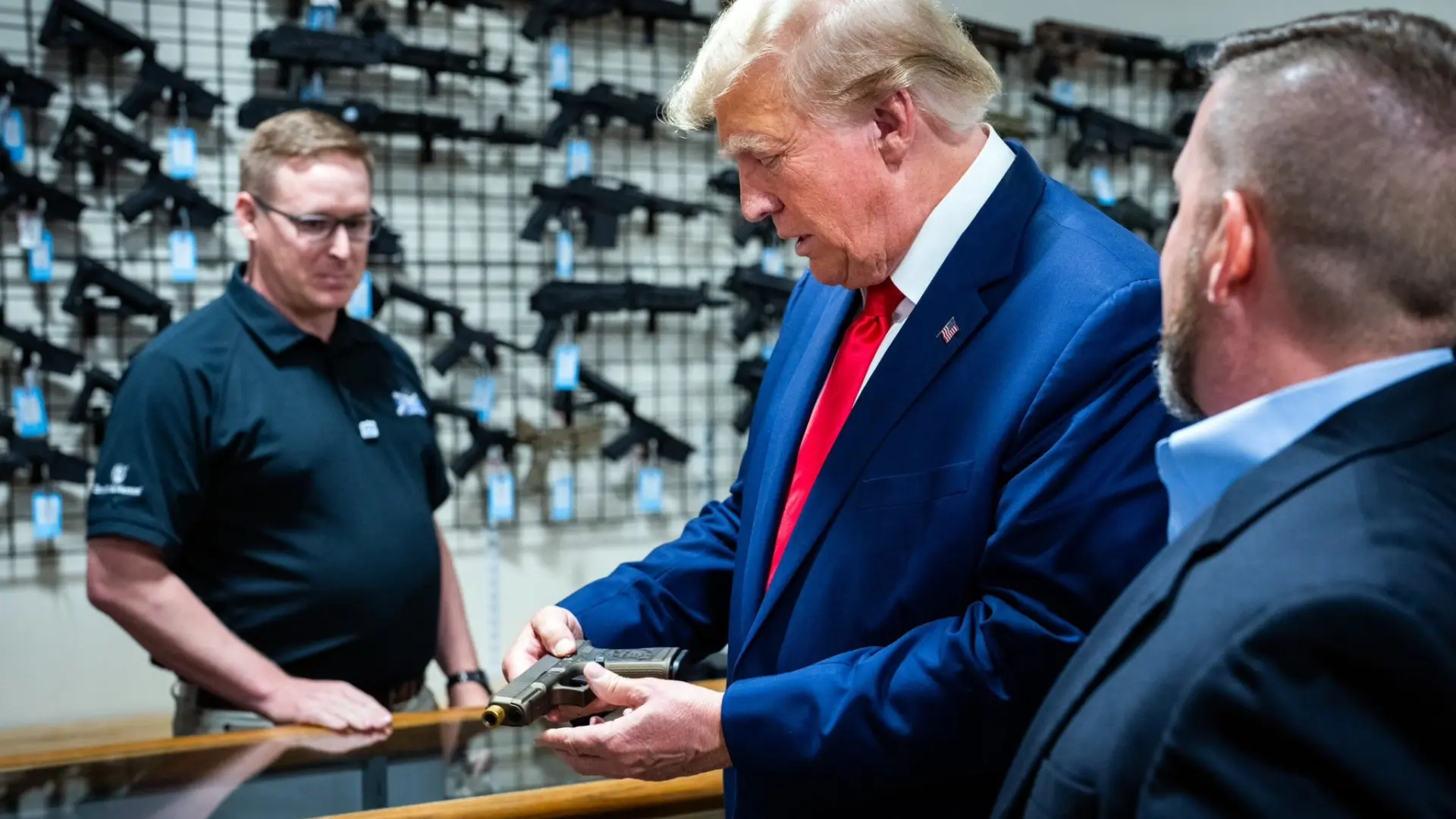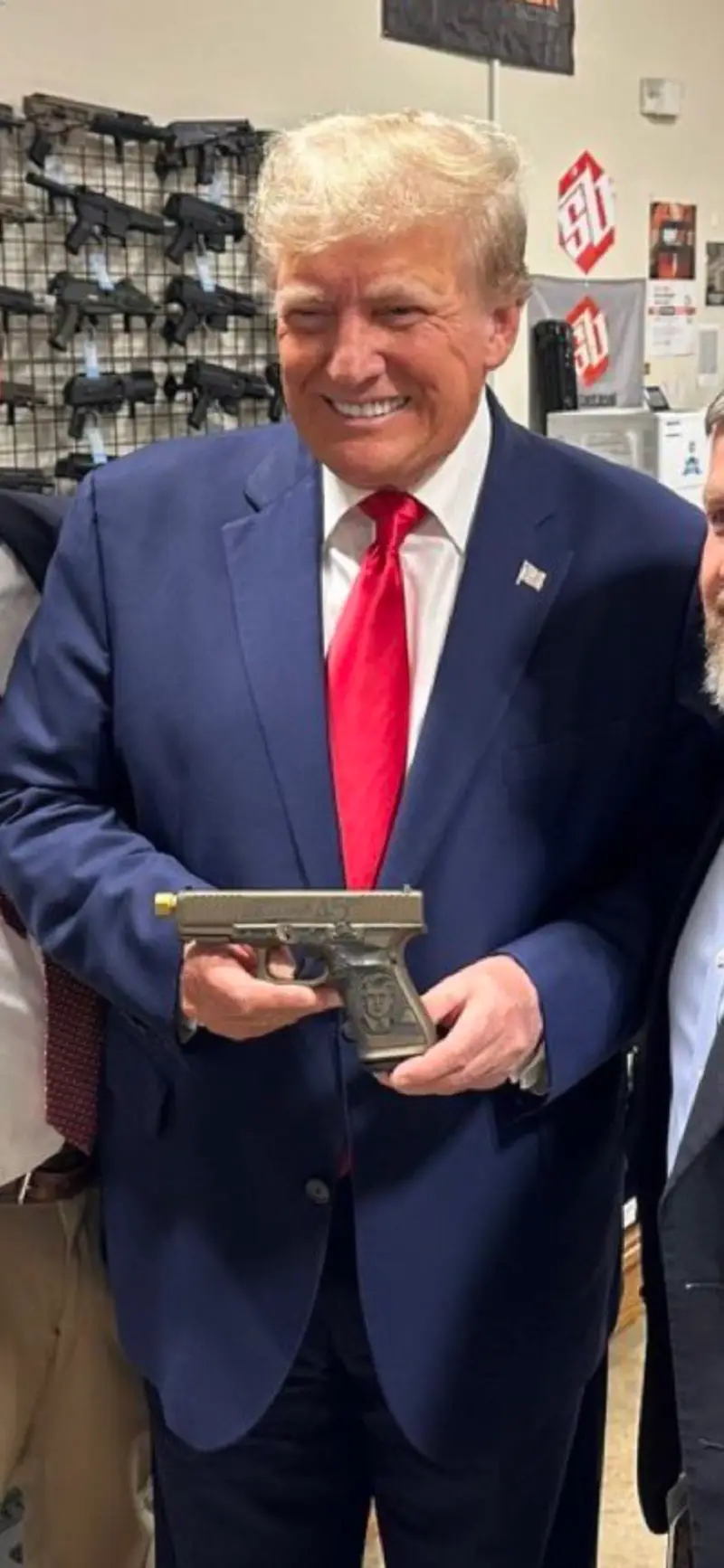 خلال جولة كان يقوم بها في مصنع للقوارب في ولاية كارولينا الجنوبية، توقف الرئيس الأميركي السابق دونالد ترامب عند متجر أسلحة لإلقاء نظرة على التصاميم الجديدة وأبدى رغبته في شراء قطعة سلاح من نوع "غلوك" وجد أن صورته محفورة عليها.