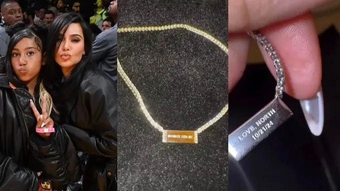 ونشرت مقطع فيديو عبر "إنستغرام"، كشفت فيه كيم عن هدية من ابنتها نورث ويست، وهي قلادة ماسية منقوش عليها عبارة "مرحاض سكيبيدي".