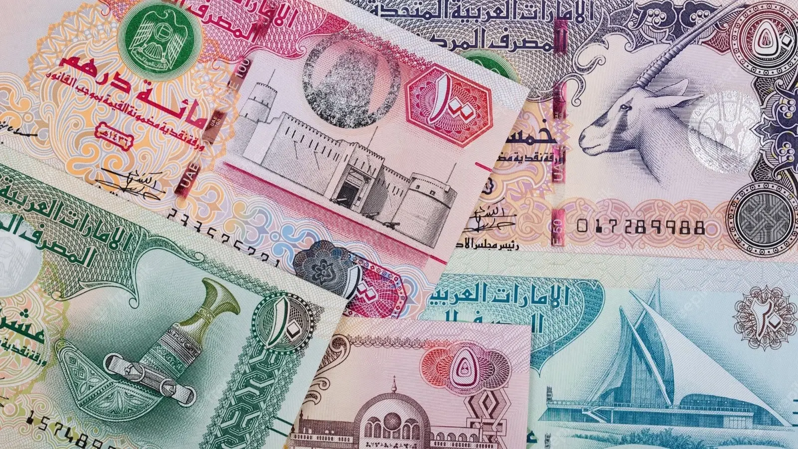 - الإمارات العربية المتحدة: الدرهم الإماراتي، وينقسم الدرهم إلى 100 فلس.