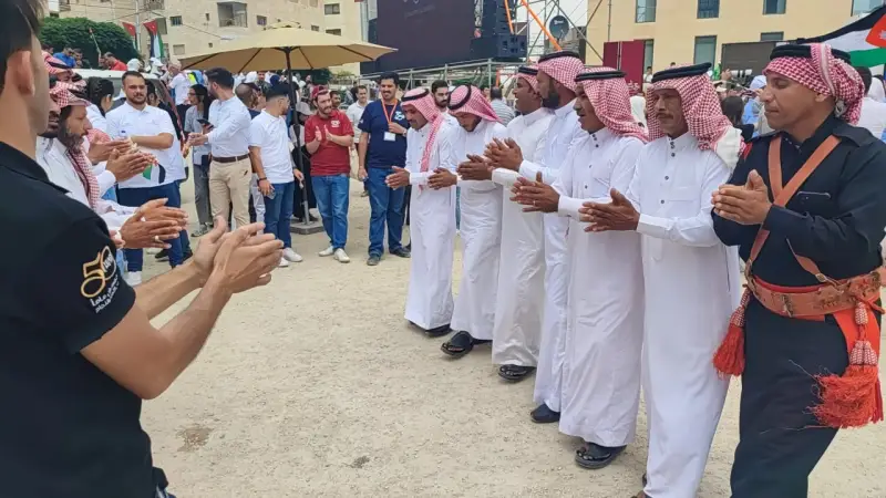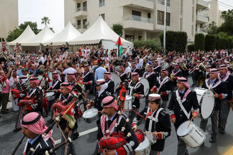 وبين الدوار الخامس والسادس، تجمع الأردنيون لمشاهدة الموكب الأحمر الذي يقل ولي العهد إلى قصر الحسينية.