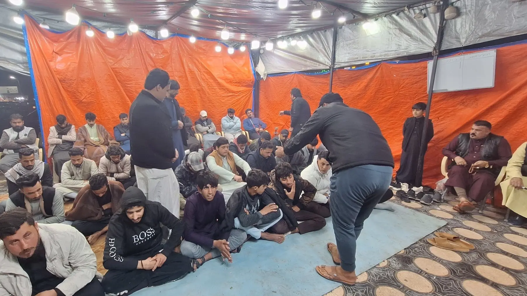 ويجلس اللاعبون بعدها في صفوف، أغلبهم على الأرض وآخرون على كراس، مغلقين قبضاتهم، ويراقبون بحرص شديد رئيس الفريق الخصم الذي يتقدم لتفقد اللاعبين الواحد تلو الاخر، في مهمة ترمي لتحديد حامل المحبس خلال 10 دقائق فقط.