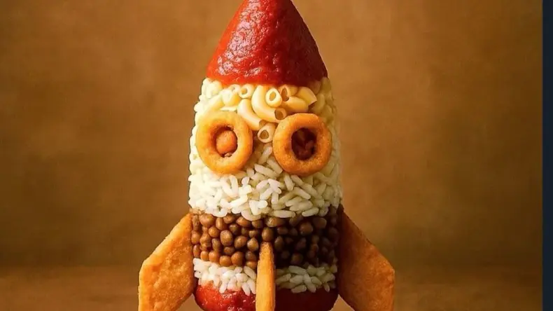الملصقة كانت لصاروخ من الكشري، وهو أحد أشهر الأطباق الشعبية في مصر.