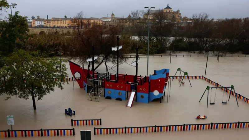 وتم إجلاء عدة مناطق سكنية بالقرب من نهر الوادي الكبير في قرطبة بالأندلس يوم الجمعة بسبب الارتفاع الكبير في منسوب المياه.