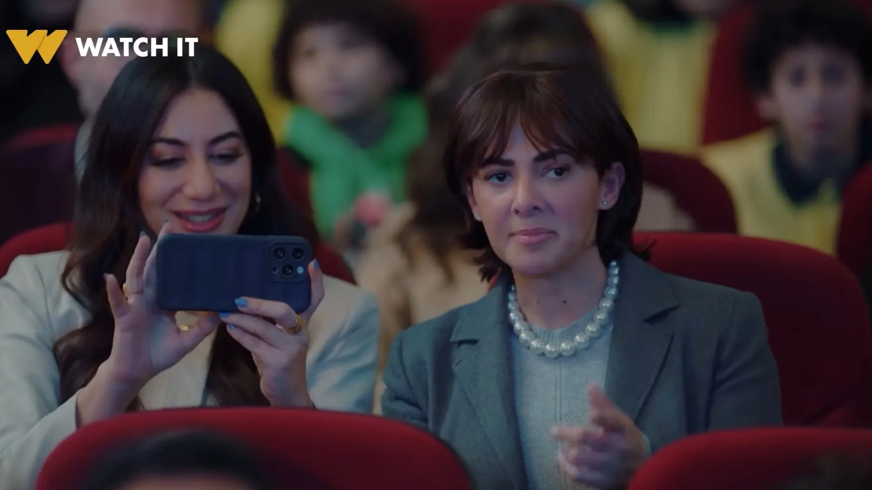 تصطحب صديقتها داليا لحضور مسرحية ابنها عمر، لكنه ينسى حواره أثناء العرض، فتقف في منتصف القاعة لمساعدته، ما يثير غضب أولياء الأمور الذين يحتجون على حجبها للرؤية.