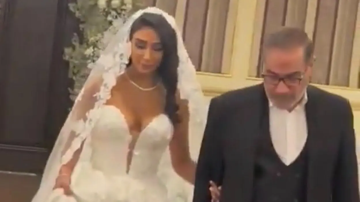 وأظهر الفيديو شمخاني وهو يرافق ابنته إلى المنصة المخصصة للعروسين داخل القاعة، بينما ظهرت العروس بفستان أبيض مكشوف الصدر وشَعر منسدل على كتفيها، في مشهد غير مألوف في المجتمع الإيراني المحافظ، في مشهد أثار موجة واسعة من الجدل داخل الأوساط الإيرانية.