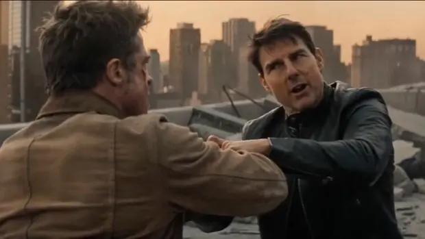 في فيديو جديد انتشر بسرعة كبيرة، ظهر الممثلان براد بيت وتوم كروز وهما يتبادلان اللكمات على سطح أحد المباني في مشهد وكأنه من فيلم أكشن سينمائي.