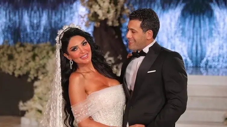 - احتفالاً بزفافهما في حفل كبير حضره الكثير من نجوم الإعلام والفن في مصر.
